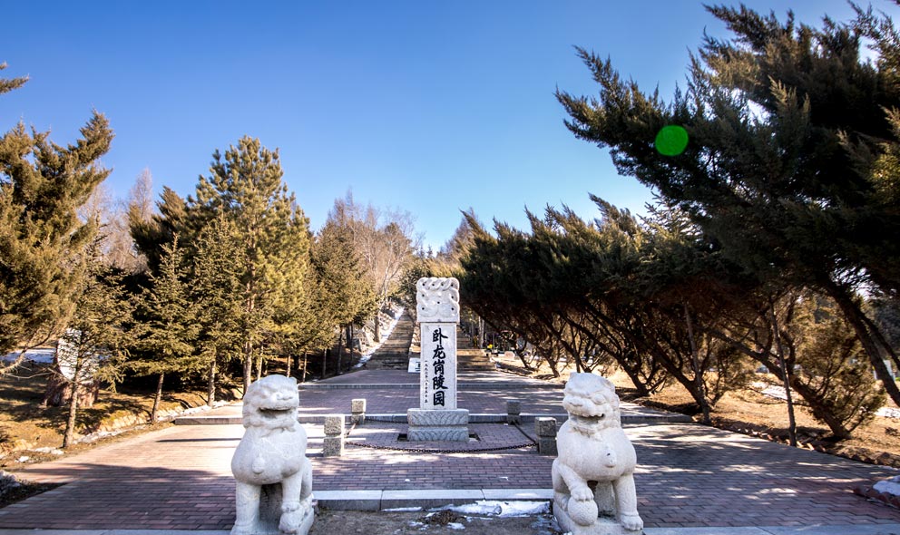 卧龙岗生态人文纪念公园建于1995年,是国家民政部门正式批准的合法公墓,1997年经宾县工商局核准发证对外营业,是国有控股有限责任公司。公园位于哈市东南,距哈尔滨约45公里处的卧龙岗山脉西南坡。陵园三面环山,一面临水。