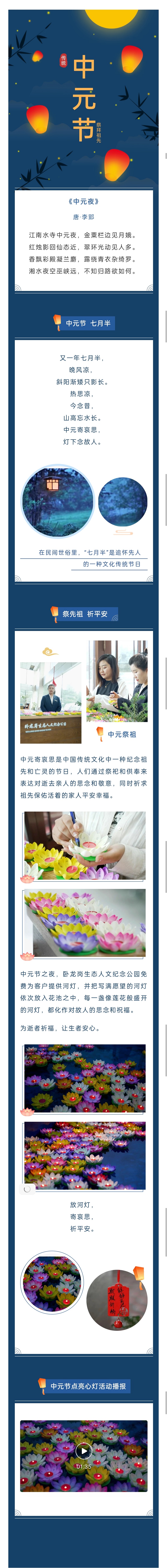 又一年七月半, 晚风凉, 斜阳渐矮只影长。 热思凉, 今念昔, 山高忘水长。 中元寄哀思, 灯下念故人。